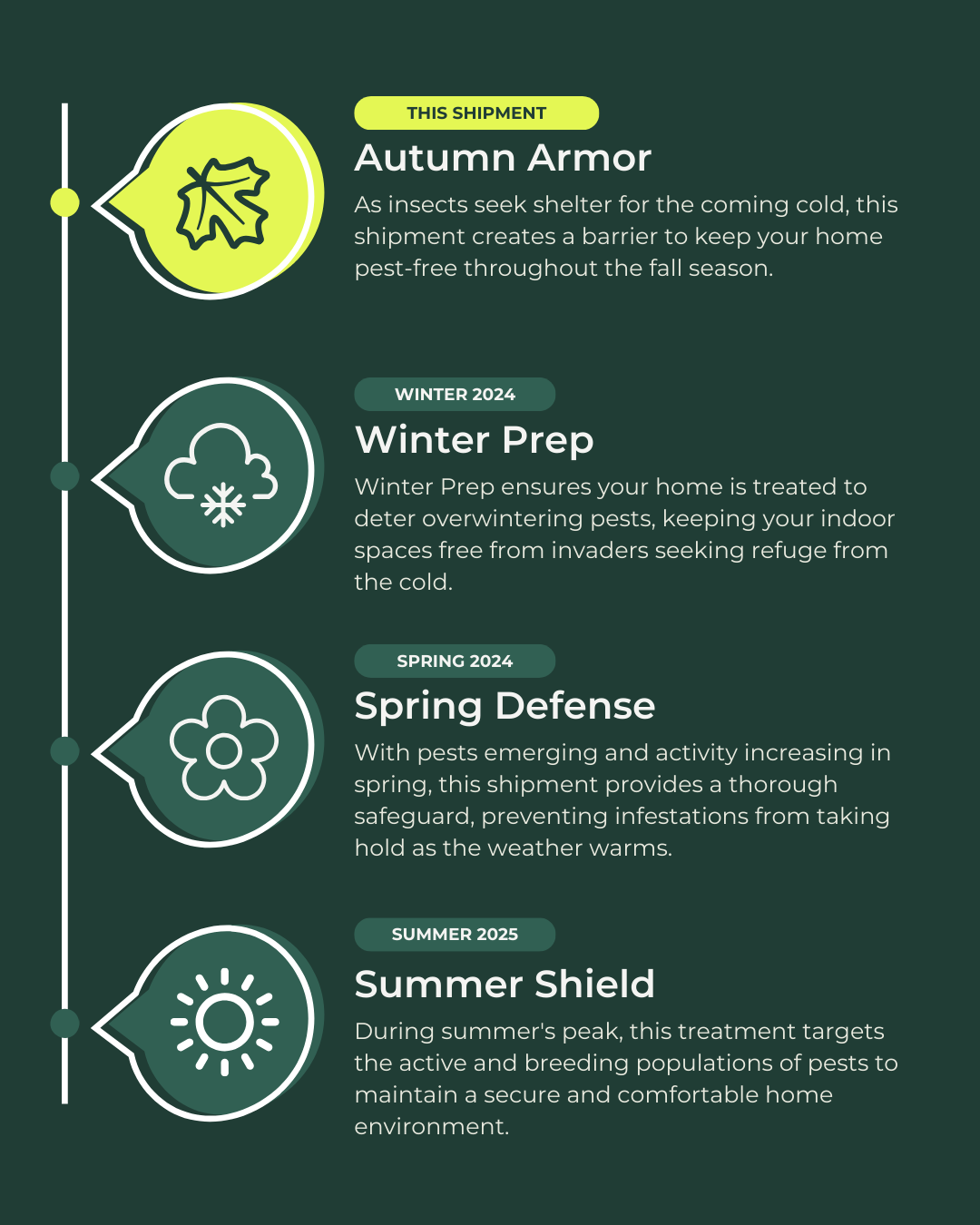 This frequency can depend on factors like your local climate and specific pest challenges. With Trumbug's subscription service, you'll receive timely shipments (every 2-3 months) right when it's time to reapply, ensuring your home stays protected without any hassle.